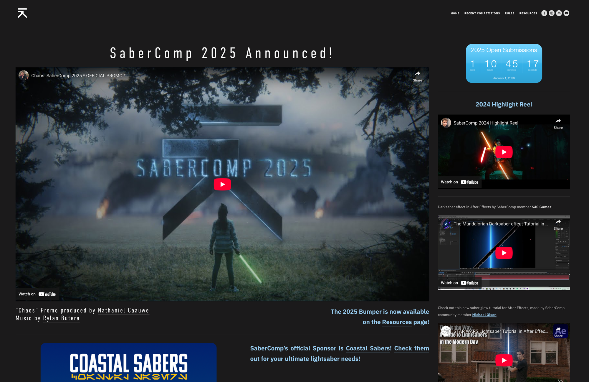 Attention Competitors and SaberFans! The playlist for SaberComp 2025: Chaos is now live! Enjoy the staggering twenty-seven entries from our talented community this year!